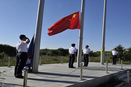 伴隨著廣播介紹大連海事大學與錦州航星集團校企合作的深厚情誼,我們全班和集團所有員工已經(jīng)整齊的站在了國旗前,等待著國旗升起的莊嚴時刻。
